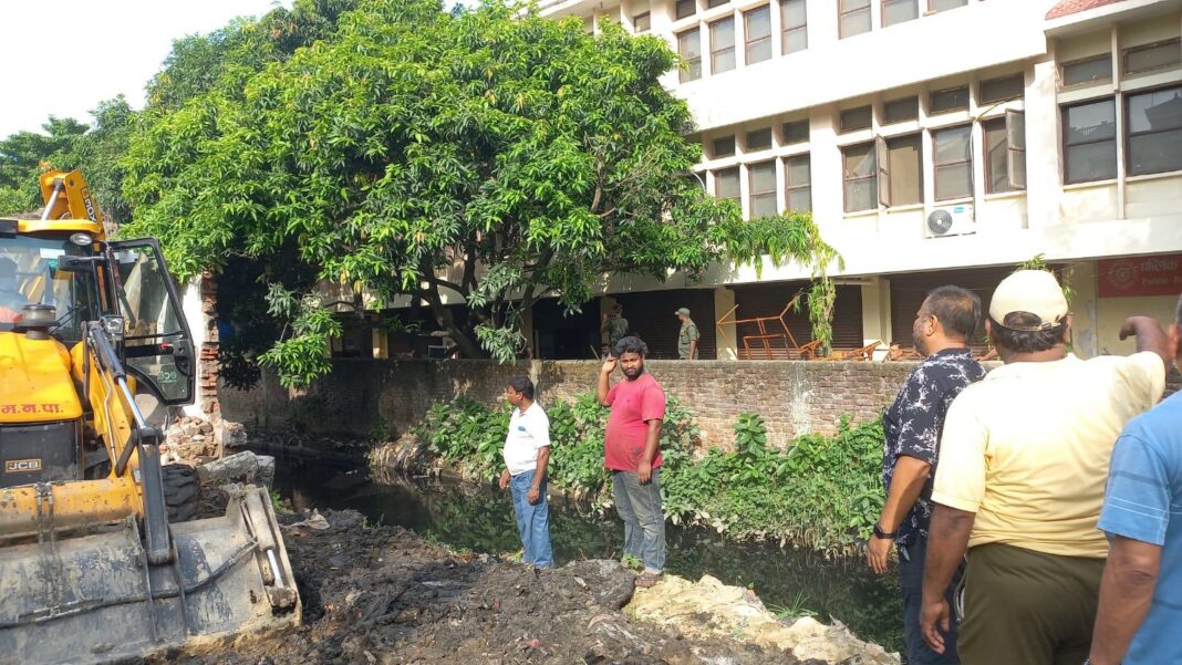 वीरगञ्जको मुख्य नाला सफाई तिव्र, नाला अतिक्रमण गरेर बनाइएका संरचना हटाइँदै