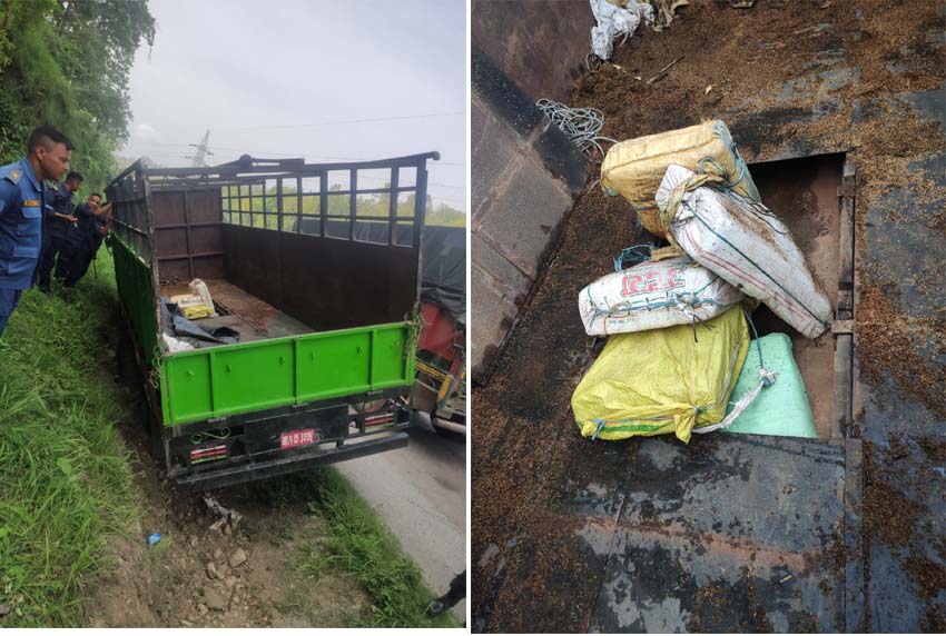 सूचनाको आधारमा प्रहरीले खोजतलास गर्ने क्रममा जीतपुरसिमरा उमनपा वडा नं–२२ पूर्ब पश्चिम लोक राजमार्ग सडक खण्डको चुरिया माई मन्दिरनजीकैको सडकको पूर्व साइडको नालामा पल्टिएको अवस्थामा ट्रक भेटिएको थियो । ट्रकको चालक, सहचालक फरार भएको तथा ट्रकको सामान लोड गर्ने पछाडीको भागमा फल्स डब्बाभित्रबाट प्लास्टिकको ५ वटा बोरामा गाँजा १०५ किलो बरामद भएको जिप्रका, बाराले जनाएको छ ।