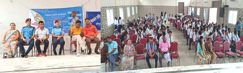 कार्यक्रममा कक्ष्Fा ९, १०, ११ का २५० जना विद्यार्थीहरुलाई लागूऔषध तथा साइबर क्राइम सम्बन्धी जानकारी गराइएको थियो ।