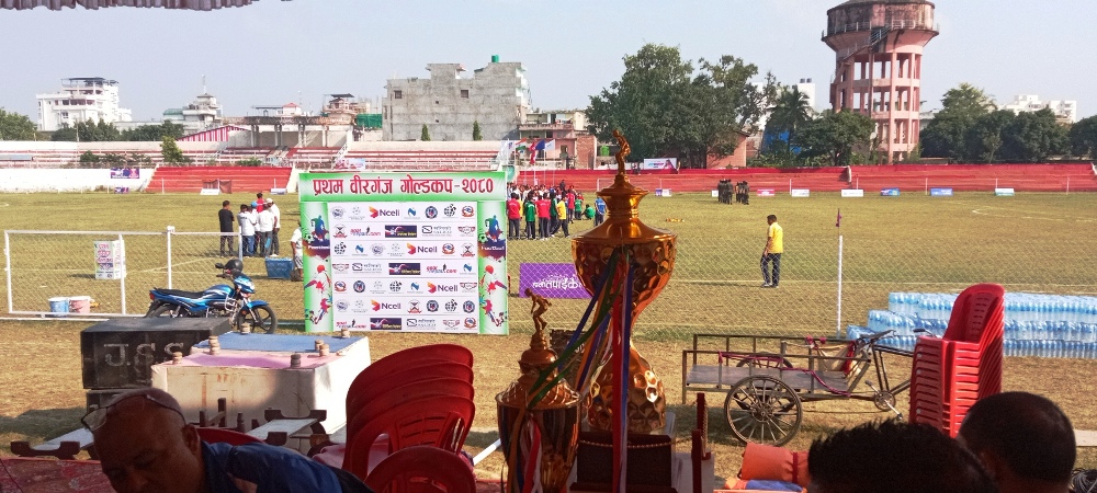 क्रिकेटका राष्ट्रियस्तरका खेलाडी आरिफ शेख र आसिफ शेखजस्ता खेलाडीले बल उफारेको नारायणी रंगशाला पछिल्लो समयमा खेल खेलाउने लायक नभएपछि प्रथम वीरगन्ज गोल्डकप २०८० समेत विकल्प खोजी गर्दै वीरगन्जकै आदर्शनगर रंगशालामा गरी वीरगन्जको विगतको शाख खोज्ने प्रयास भेट्रान सिटी क्लवले गरेको छ । राजनीतिक आडमा हुँने भ्रष्टाचार र राज्यको उपेक्षामा परेको वीरगन्जको खेलकुद र चुस्त खेल मैदानकै अभावमा रोकिएको ठूलो प्रतियोगिता विगत २२ बर्षदेखि खासै हुन सकेको थिएन । यो पटक भने वीरगन्जले अझै पनि राम्रा प्रतियोगिता गराउन सक्छ भन्ने सन्देश दिन पनि आदर्शनगर रंगशालामै भए पनि प्रतियोगिता गर्न आँट भेट्रान सिटीले गरेको भेट्रान सिटी क्लवका सल्लाहकार तथा फुटवल संघ मधेश प्रदेशका उपाध्यक्ष दिपक साह कानुले तर्क गरे ।