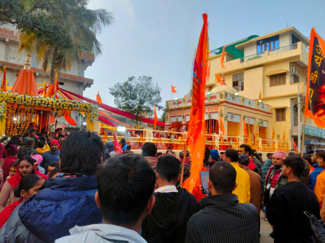 वीरगंज, ८ माघ । भारतको अयोध्यामा राम मन्दिरको उदघाटन भइरहँदा वीरगंजमा त्यसको छुट्टै उत्सव देखिएको छ । वीरगंजका सडक सफा गरिएको छ भने पसलहरुमा रामनामी झन्डा गाडिएको छ । वीरगंज महानगरका मठमन्दिरलाई सजावट गरी आकर्षक पारिएको छ । प्रसिद्ध शक्तिपीठ माईस्थानको गहवामाई मन्दिर प्रांगणमा सोमवार साँझ १ लाख २५ हजार दियो बालेर भव्य दीप प्रज्वलन, महाआरती र हनुमान आराधनाको कार्यक्रम छ ।