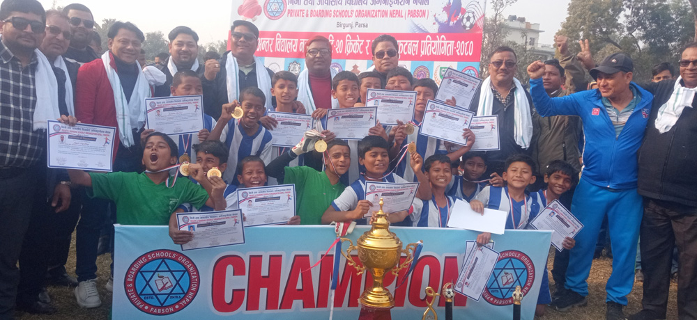 नीजि विद्यालयहरुको संगठन ‘प्याव्सन’ पर्साले आयोजना गरेको ‘जुनियर फुटवल प्रतियोगिता २०८०’ को उपाधी साउथ जोन मा.वि.ले चुमेको छ । पर्साका विभिन्न २५ वटा नीजि विद्यालयहरु सहभागी जुनियर नकआउट फुटवल प्रतियोगिता २०८० को उपाधी यो वर्ष साउथ जोन मा.वि.ले चुमेको हो ।