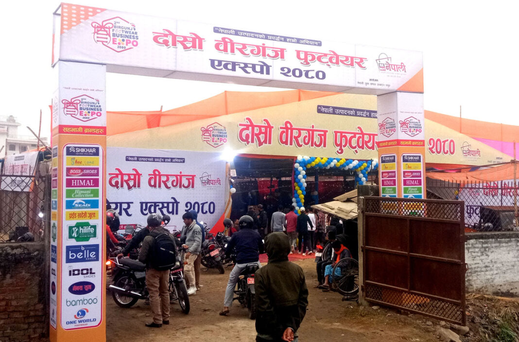 स्वदेशी जुत्ता नेपाली नागरिकका खुट्टासम्म पु¥याउने उद्देश्यले सीमावर्ती शहर वीरगन्जमा ‘दोस्रो वीरगन्ज फुटवेयर एक्स्पो २०८०’ सुरु भएको छ । मुलुक भित्रै उत्पादित जुत्ता चप्पल नेपालीका खुट्टासम्म पु¥याउने लक्ष्य सहित दोस्रो वीरगन्ज फुटवेयर उक्स्पो २०८० लगाइएको हो ।