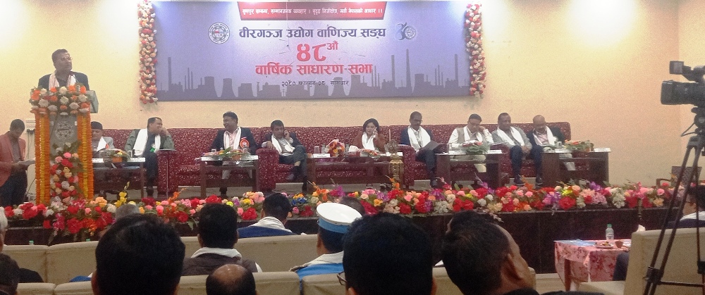 डेड दशक अगाडीका ‘एजेण्डा’ लाई निरन्तरता दिंदै वीरगन्ज उद्योग बाणिज्य संघको ४८ औं बार्षिक साधारण सभा सम्पन्न भएको छ । राज्यद्वारा अझै अघोषित वीरगन्ज पथलैया औद्योगिक कोरिडोर क्षेत्रमा नियमित विद्युत आपूर्तिको मुद्दा संघले डेड दशक अगाडीदेखि उठाउँदै आएको हो । यो पटक पनि सो मुद्दा लगायतका एजेण्डा संघको बार्षिक साधारण सभामा निरन्तर एजेन्डाका रुपमा छन् । व्यवस्थित विद्युत आपूर्ति अझै नभएको र लोड सेडिङ्गको समस्या कायमै रहेको भन्दै संघले डेड दशक अगाडी उठाउन थालेको औद्योगिक क्षेत्रको समस्याको एजेण्डा यो पटक पनि पुनः बार्षिक साधारण सभा समेटिएको छ । मुलुककै जेठो उद्योग बाणिज्य संघ वीरगन्जले आफ्नो ४८ औं बार्षिक साधारण सभामा विद्युत आपूर्ति व्यवस्थित गर्न र लोड सेडिङ्ग मुक्त कोरिडोर बनाउन यो पटक पनि सरकारसँग माग गरेको छ ।