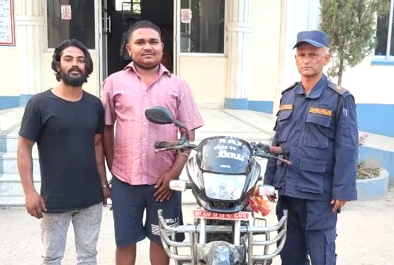 मंगलवार बेलुका अन्दाजी ८ बजेको समयमा जिल्लाको परवानीपुर गाउँँपालिका वडा नम्बर ५ गण्डक नहर स्थित हुलाकी राजमार्ग सडक खण्डमा चोरी भएको मोटरसाईकल सहित दुबै जनालाई फेला पारेको थियोे ।