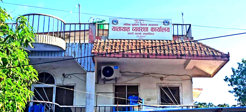 वीरगंज, १४ भदौ । यातायात कार्यालय वीरगञ्ज पर्साबाट सवारी चालक अनुमति पत्र (लाइसेन्स) को वितरणमा आजको मितिदेखि रोक लगाइएको छ ।