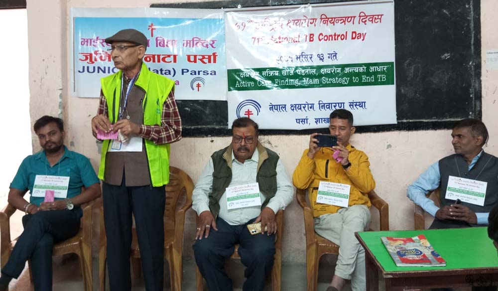 वीरगंज, १३ मंसिर । ७१औं राष्ट्रिय क्ष्ँयरोग नियन्त्रण दिवसको अवसरमा बिहीवार क्ष्ँयरोग सक्रिय खोज पडताल क्ष्ँयरोग अन्त्यको आधार नाराका साथ नेपाल क्षयरोग निवारण संस्था, पर्सा शाखाले कार्यक्रम सम्पन्न गरेको छ ।