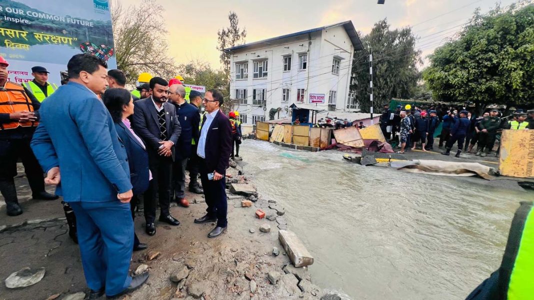 काठमाडौं, ३० माघ । नेपाल विद्युत प्राधिकरणले विद्युतका लाइन भूमिगत गर्नका लागि होरीजोन्टल ड्रिलिङ गर्ने क्रममा काठमाडौंको बबरमहलमा रहेको खानेपानी थोक वितरण प्रणालीको पाइप फुटेको छ । पाइप फुटेर पानी पसेपछि बबरमहलस्थित विशेष अदालत लगायतका सरकारी भवनहरू जलमग्न बनेको छ। सो खबर पाउनासाथ खानेपानीमन्त्री प्रदीप यादव पोखराबाट काठमाडौं आइ पानी बन्द गर्नका लागि काठमाडौं उपत्यका खानेपानी लिमिटेड, पिआइडी प्रमुखलाई निर्देश दिनुभएको थियो । मन्त्रालयका सचिव इ. प्रमिलादेवी शाक्य, बज्राचार्य, केयूकेएलका सिइओ अशोककुमार पौडेल, पिआइडिका प्रमुख टिकाबहादुर चौधरीसहित मन्त्रालयको टोली पानी निकास र रोकथामका लागि प्रयासरत छन् । पानी जमेर त्यहाँ रहेका सवारीसाधनहरू डुबानमा परेको तथा आवतजावतमा समस्या उत्पन्न भएपछि काठमाडौं उपत्यका खानेपानी लिमिटेडका प्रमुख कार्यकारी अधिकृत लाई भल्भ बन्द गर्न तथा वास आउट खोल्न खानेपानीमन्त्री यादवले निर्देशन दिए । हाल उक्त क्षेत्रमा पानी आपूर्ति बन्द गरिएको छ । सम्बन्धित निकायहरूले शीघ्र मर्मत कार्य गरी जनजीवन सुचारू गर्न मन्त्री यादवले अनुरोध गरेका छन् ।