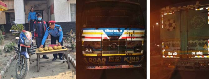 वीरगंज, १ फागुन । जिल्ला प्रहरी कार्यालय, बाराले ५ किलो अफिमसहित एकजनालाई पक्राउ गरेको छ । सूचनाको आधारमा आज बिहान इलाका प्रहरी कार्यालय अमलेखगंजबाट प्रबनानि टेकबहादुर कार्कीको कमान्डमा खटिएको प्रहरी टोलीले जीतपुरसिमरा उपमहानगरपालिका–२१ अमलेखगंजमा चेकजांच गर्ने क्रममा हेटौंडाबाट वीरगंज जांदै गरेको बा ३६ प २७१४ नम्बरको मोटरसाइकलमा सवार मकवानपुर जिल्ला कैलाश गापा–६ गोगने बस्ने २५ वर्षीय भुवन सिंह थिङलाई ५ किलो चरेससहित पक्राउ गरिएको जिप्रका, बाराका निमित्त सूचना अधिकारी प्रहरी निरीक्षक बलराम श्रेष्ठले जनाएका छन् । यसैगरी आज दिउंसो प्रहरी चौकी पथलैयाले चेकजांच गर्ने क्रममा काठमाडौंतर्फ जांदै गरेको ना ६ ख ६३१५ नं.को ट्रकबाट २४ लाख ५७ हजार मूल्य बराबरको विभिन्न सामानसहित ट्रक नियन्त्रणमा लिएको छ । सो ट्रकमा लोड रहेको मोटर पार्टस, पेपर, पंखा, मोटरलगायत विभिन्न सामानको बिलबिजकभन्दा बढी देखिएको र स्रोत खुलाउन नसकेपछि कारबाइको लागि राजस्व अनुसन्धान कार्यालय पथलैया बार बुझाएको प्रवक्ता श्रष्ठले बताएका छन् ।