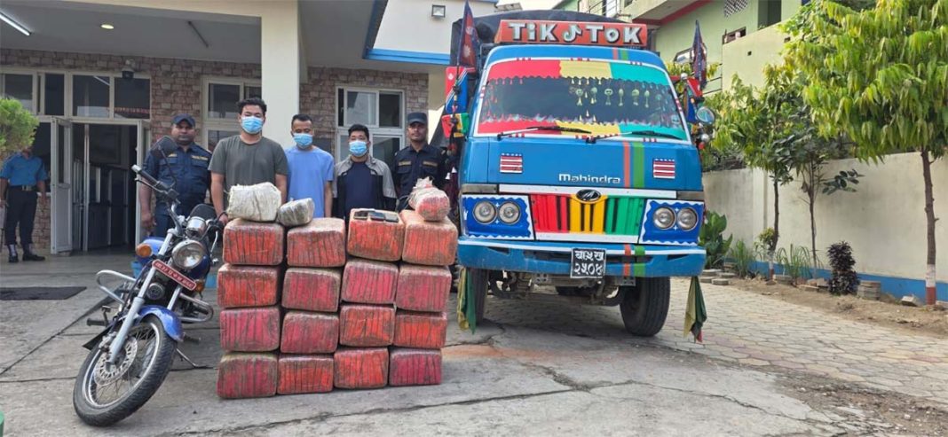 वीरगंज, ५ वैशाख । जिल्ला प्रहरी कार्यालय, बाराले बाराको विभिन्न स्थानबाट ३६७ किलो गाँजा सहित ५ जनालाई पक्राउ गरेको जनाएको छ । सूचनाको आधारमा बैशाख ४ गते राति ११ः४५ बजे इलाका प्रहरी कार्यालय सिमराले जीतपुर सिमरा उप–महानगरपालिका–३ बजनीमा हेटौडाबाट वीरगंज जाँदै गरेको ना ५ ख २५०४ नम्बरको मिनी ट्रक चेक जाँच गर्दा लुकाई छिपाई राखिएको अवस्थामा १९ पोका करीब ३०५ किलो गाँजासहित तीनजनालाई पक्राउ गरेको जनाएको छ । प्रहरीले ट्रक चालक जिल्ला मकवानपुर कैलास गा.पा.०४ बस्ने वर्ष ३२ को राजन लामा, ट्रकमा सवार जिल्ला मकवानपुर हेटौडा उ.म.न.पा.३ बस्ने वर्ष ३३ को ईश्वर लोप्चन र ओसार पसारमा संलग्न जिल्ला मकवानपुर कैलास गा.पा.१० बस्ने वर्ष २७ को जीवन थोकर रहेको बारा प्रहरीले जनाएको छ । यसै गरी बैशाख ४ गते बिहान ईलाका प्रहरी कार्यालय प्रसौनीले प्रसौनी गा.पा. वडा नं.४ खुटवा बस्ने वर्ष ३१ को पवन कुमार साहलाई २ किलो १४० ग्राम गाँजासहित पक्राउ गरेको छ । पवनले आफनै घरबाट गाँजाको कारोबार गरिरहेको सूचनाको आधारमा प्रहरीले पक्राउ गरेको छ । यसैगरी आज बिहान २ः३० बजे इलाका प्रहरी कार्यालय सिम्रौनगढले पचरौता न.पा. वडा नं. १ मुशहरीटोल स्थित मकैबारीबाट ६० किलो गाँजासहित एकजना भारतीय नागरिकलाई पक्राउ गरेको छ । टाउकोमा गाँजा बोकेर नेपालबाट भारत लगिरहेको अवस्थामा भारत बिहार प्रान्त मोतिहारी जिल्ला पञ्चायत बिजवनी थाना जितना ग्राम रेगनीया बस्ने वर्ष २५ को राजबिहारी कुमारलाई पक्राउ गरिएको जिप्रका, बाराका प्रवक्ता प्रहरी नायब उपरीक्षक विजयराज पण्डितले जानकारी गराएका छन् ।