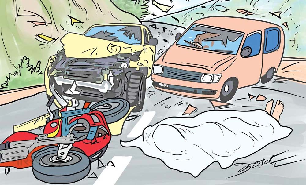 कपिलवस्तुको बुद्धभूमी नगरपालिका–१ टिक्करमा ट्याक्टर र मोटरसाइकल एकआपसमा ठोक्किँदा मोटरसाइकल सोही स्थानका ६० वर्षीय गौतम केसी तथा ताप्लेजुङको फक्ताङलुङ गाउँपालिका–६ चाँगामा मे १त ७७५८ नम्बरको ट्याक्टर अनियन्त्रित भई दुर्घटना हुँदा ट्याक्टरमा सवार सोही स्थानका २८ वर्षीय भुछिरिङ शेर्पाको घटनास्थलमा मृत्यु भएको प्रहरीले जनाएको छ ।