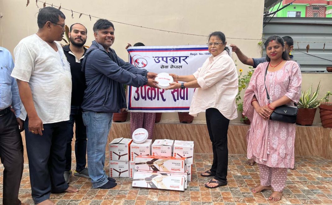 वीरगंज, २४ वैशाख । उपकार सेवा नेपालको सहयोगमा वीरगंज महानगरपालिका. वार्ड नं ३२ टेढा स्थित मन मिश्रा आधारभूत विद्यालयमा आठ वटा पंखा वितरण गरिएको छ ।