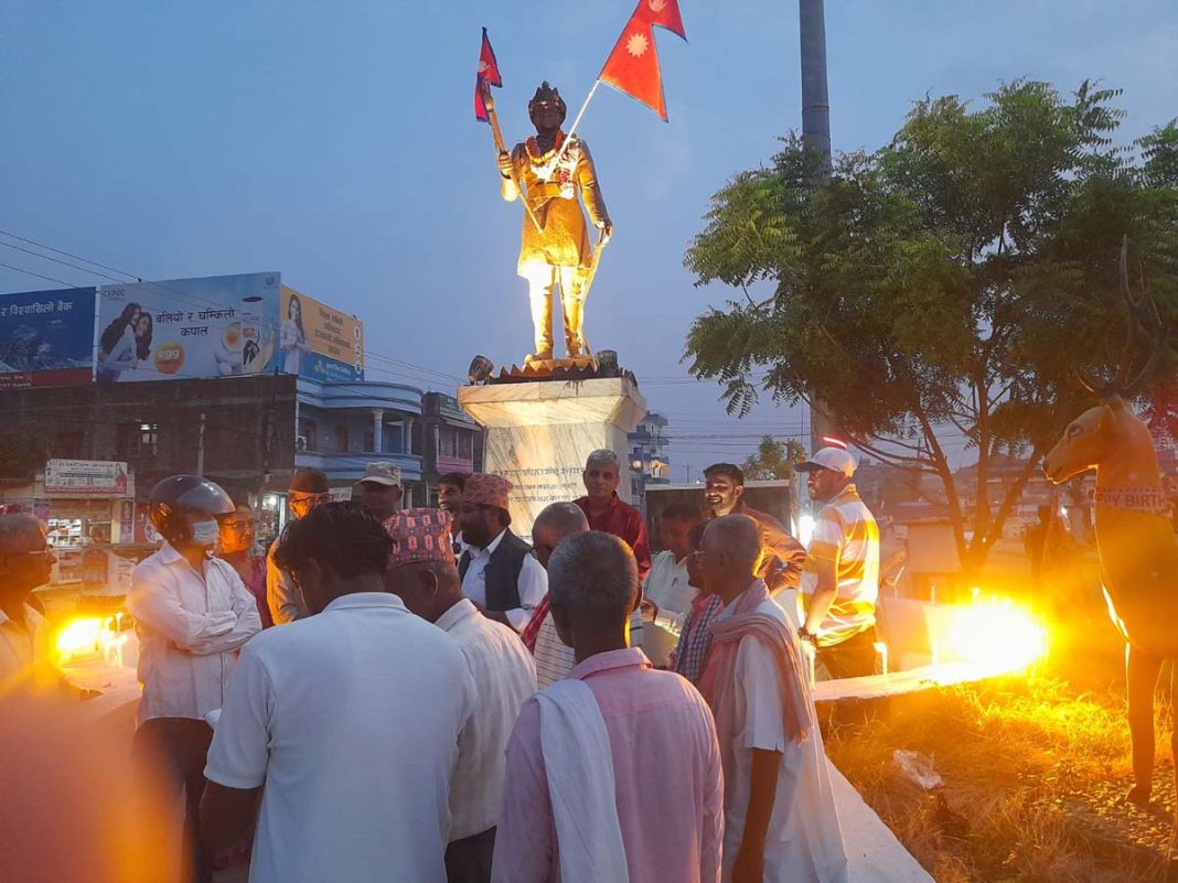 वीरगंज, १९ जेठ । राष्ट्रिय नागरिक संघर्ष समितिका प्रवक्ता हिरा बहादुर चन्दले राजसंस्था पुनरस्थापनाका लागि आन्दोलन जारी रहने बताउनुभएको छ । स्व. श्री ५ महाराजधिराज वीरेन्द्र वीर विक्रम शाहदेव सरकारको पुण्यतिथिमा आयोजित श्रद्धाञ्जलिसभालाई सम्बोधन गर्दै प्रवक्ता चन्दले यस्तो बताउनुभएको हो । वीरगंज महानगरपालिका वडा नं. १५ प्रतिमाचोकस्थित वीरेन्द्र शालिक प्रांगणमा आयोजित कार्यक्रममा उहाँले जारी आन्दोलनलाई कसैले दायाँ–बायाँ गर्न खोजे ठीक नहुने चेतावनी दिंदै मुलुकको वर्तमान दयनीय अवस्थाबाट उकास्न राजसंस्था पुनरस्थापना र हिन्दु अधिराज्य परिहार्य भएको बताउनुभयो । उहाँले स्व. राजा वीरेन्द्रको जीवनीबारे पनि चर्चा गर्दै स्व. राजाबाट जारी भएको संविधान २०४७ अहिलेको अवस्थाबाट मुलुकलाई उकास्न पुनः स्थापित गर्नुको विकल्प नरहेको बताउँदै स्व. श्री ५ वीरेन्द्रप्रति श्रद्धाञ्जलि अर्पण गर्नुभयो । कार्यक्रममा राष्ट्रिय बजरंग दलका अध्यक्ष राजु जयसवालले स्व. राजा वीरेन्द्रको जीवनीबारे चर्चा गर्दै मुलुकलाई विदेशी दलालहरुको चंगुलबाट उकास्न संविधान २०४७ अर्थात् राजसंस्था र हिन्दु अधिराज्य पुनः स्थापनाको कुनै विकल्प नरहेको दावी गर्नुभयो । समाजसेवी पशुपति विक्रम शाहको अध्यक्ष्Fतामा आयोजित कार्यक्रममा राष्ट्रवादी नेताहरुसहित आम जनमानसको सहभागिता रहेको थियो ।