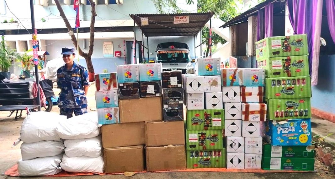 वीरगंज २३ जेठ । भारतबाट अवैध रूपमा भित्र्याइएका चकलेट, खजुर तथा स्प्रे पेन्टसहित रू. ४ लाख मूल्य बराबरको सामग्री सशस्त्र प्रहरी बल, नेपाल प्र.सि.सु. गुल्म बीरगंजले नियन्त्रणमा लिई वीरगंज भन्सार कार्यालयमा बुझाएको जनाएको छ। वीरगंज महानगरपालिका–८, गहवाटोलस्थित मुन्ना हवारीले संचालन गर्दै आएको गाईगोठमा छापामारी सशस्त्र प्रहरी बलको टोलीले नियन्त्रणमा लिएको जनाएको छ । उक्त सामग्रीहरू भारतबाट भन्सार छली गोठमा लुकाइछिपाइ भण्डारण गरिएको अवस्थामा फेला परेपछि वीरगंज भन्सार कार्यालयमा बुझाइएको सशस्त्र प्रहरी नायव उपरीक्षक एवं सूचना अधिकारी देबेन्द्र बहादुर सिंहले जानकारी दिए ।