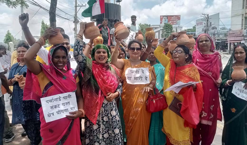 वीरगंज, २५ असार । महिला जनमत संघ पर्साले आज वीरगंजको घन्टाघरमा जल सत्याग्रह कार्यक्रम गरेको छ । ‘पानी देउ या मारी देउ’ नारासहित जनमत पार्टी पर्साका अध्यक्ष ओमप्रकाश सर्राफ, महिला नेतृ रम्भा मिश्रा, अनिता रौनियार, नजमा खातुन लगायतको उपस्थिति थियो। वीरगंजमा खानेपानी अभावप्रति तीन वटै तहका सरकारले आँखा खोल्नुपर्ने बताए । कार्यक्रममा वक्ताहरूले वीरगंजवासीलाई दैनिक खान, नुहाउन र जीवनयापन गर्न गाह्रो परेको उल्लेख गर्दै, सरकारलाई खानेपानी समस्या तत्काल समाधान गर्न माग गरे ।