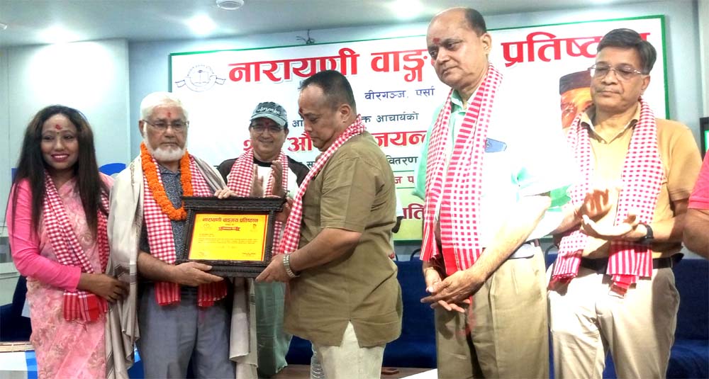 कार्यक्रममा वरिष्ठ पत्रकार जगदीश प्रसाद शर्मालाई दोसल्ला र प्रशंसा पत्रद्वारा सम्मान गरिएको थियो भने साहित्यकार गणेश लाठ र राम प्रसाद अधिकारीलाई पनि दोसल्ला, प्रशंसा पत्र र रू. १२,५०० नगदसहित सम्मान गरिएको थियो । नारायणी वाङ्गमय प्रतिष्ठानकी अध्यक्ष कविता खडकाको अध्यक्षतामा भएको कार्यक्रमम वीरगंज उद्योग वाणिज्य संघका अध्यक्ष हरी गौतम, नेपाल पत्रकार महासंघ पर्साका अध्यक्ष ओम प्रकाश खनाल, केसी लामिछाने, मधेस प्रदेश महासंघका श्याम बन्जारा, मानवसेवा आश्रमका संस्थापक सदस्य देवेश गुप्ता, रामनारायण कुर्मी, सुशिला शाह, सलमा खातुनलगायतको उपस्थिति थियो । कार्यक्रमको स्वागत मन्तव्य प्रतिष्ठानका सदस्य सुर्यानारायण विक र सञ्चालन गीता भण्डारीले गरेकी थिइन ।