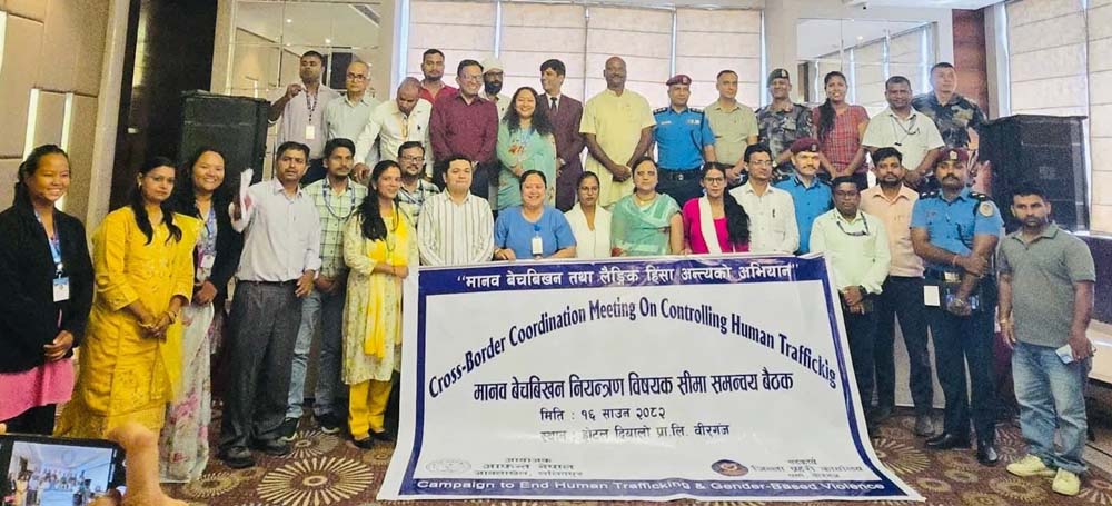 वीरगंज, १६साउन । मानव बेचबिखन तथा लैङ्गिक हिंसाको अन्त्यका लागि क्रसबोर्डर कोअर्डिनेशन बैठक तथा मानव बेचबिखन सम्बन्धी छलफल शुक्रवार वीरगंजको होटल दियालोमा सम्पन्न भएको छ । बैठकमा मानव बेचबिखन नियन्त्रणका लागि सीमा क्षेत्रमा कार्यरत विभिन्न निकायहरूबीचको समन्वय र सहकार्य सुदृढ गर्न सकिन्छ भन्ने विषयमा छलफल गरिएको थियो । आफन्त नेपाल, ललितपुरको आयोजना र जिल्ला प्रहरी कार्यालय, पर्साको सहकार्यमा भएको बैठकमा सहभागीहरूले सीमा क्षेत्रमा भइरहेको मानव बेचबिखन नियन्त्रण, पीडितको उद्धार, सुरक्षात्मक पुनःस्थापना तथा न्याय सुनिश्चितताका लागि आपसी समन्वय र सूचना साझेदारीलाई थप प्रभावकारी बनाउनुपर्नेमा जोड दिए। आफन्त नेपालका प्रतिनिधिहरूले मानव बेचबिखनको पीडितहरूलाई शीघ्र न्याय दिलाउन कानुनी कार्यान्वयन प्रक्रियालाई तीव्र बनाउनुपर्ने सुझाव प्रस्तुत गरे । जिल्ला समन्वय समिति पर्साका प्रमुख निरन्जन साह सोनार र पर्साका प्रमुख जिल्ला अधिकारी गणेश अर्यालले उदघाटन गरेको कार्यक्रममा एसपी गौतम मिश्र, सशस्त्र प्रहरी, महिला तथा बालबालिका सेवा केन्द्र, स्थानीय पालिका प्रतिनिधिहरू, सीमा प्रहरी चौकी प्रमुखलगायतको सहभागिता थियो ।