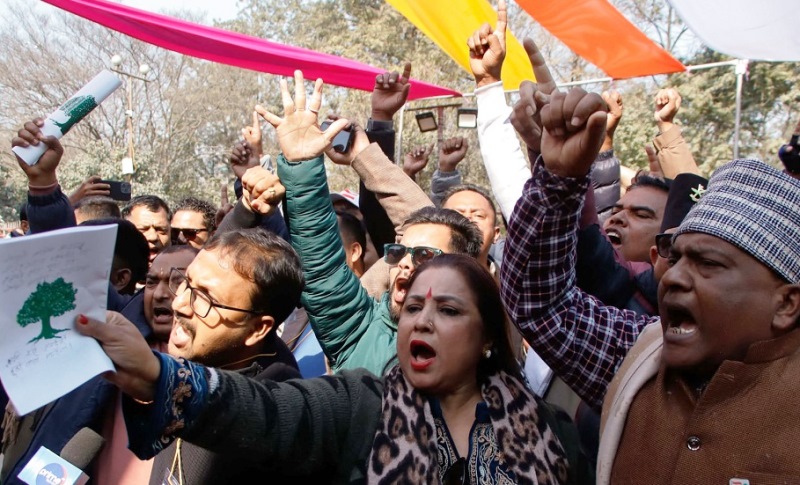 उनीहरुले ‘त्रिपक्षीय वार्ता धोका हो’, ‘समझदारी मान्दैनौं’, ‘झुटो वार्ता मान्दैनौं’ र ‘नेतृत्व फेर्न निर्वाचन गर’ जस्ता नारासमेत लगाएका छन् । विशेष महाधिवेशन पुस २७ गतेदेखि भृकुटीमण्डपमा जारी छ । महामन्त्रीद्वय गगनकुमार थापा र विश्वप्रकाश शर्माको अगुवाइमा आयोजित बिशेष महाधिवेशनमा संस्थापन पक्षको असहयोगका बाबजुद पनि बहुमत प्रतिनिधिहरूको सहभागिता रहेको छ । नेतृत्व परिवर्तनसम्मको मिसनमा तेस्रो दिनसम्म आइपुग्दा महाधिवेशनमा निर्वाचन प्रक्रिया अगाडि बढिरहेको समयमा संस्थापन पक्षले पार्टी जोगाउन भन्दै वार्ताबाट निकास खोज्दै आएको समयमा महाधिवेशन प्रतिनिधिहरुले भने षडयन्त्रको तूरुप भएको दावी गरिरहेका छन् ।