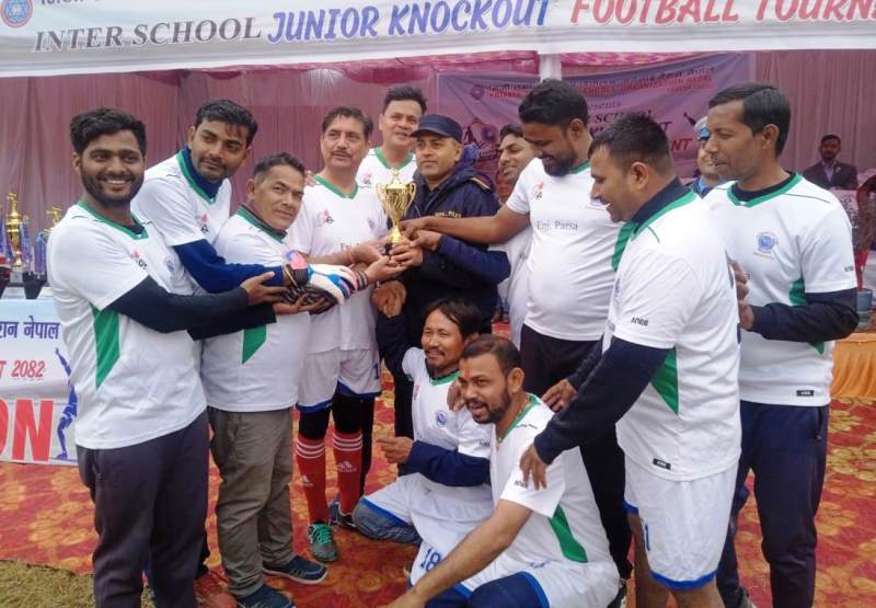 कुल २१ विद्यालयका २१ टीम बीच भएको जुनियर फुटबल प्रतियोगिता २०८२ को प्रतिस्पर्धाबाट पर्साको ठोरी एकेडेमीले उपाधी उचालेको छ । वीरगन्जको चर्चित मुनलाईट मा.वि.को टिमलाई ट्राइब्रेकरमा स्तव्ध पार्दै ठोरी एकाडेमी टिमले २०८२ को उपाधी आफ्नो पोल्टामा पारेको हो ।