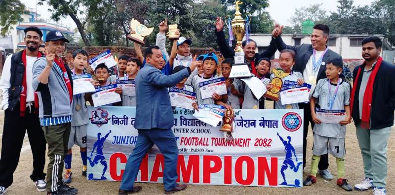 एकदशक अगाडीबाट प्याव्सन पर्साले सुरु गरेको जुनियर फुटवल प्रतियोगिता २०८२ सम्पन्न भएको छ । गएको माघ १० गतेदेखि वीरगन्जमा जारी प्रतियोगितामा शुक्रबार सम्पन्न भएको हो ।